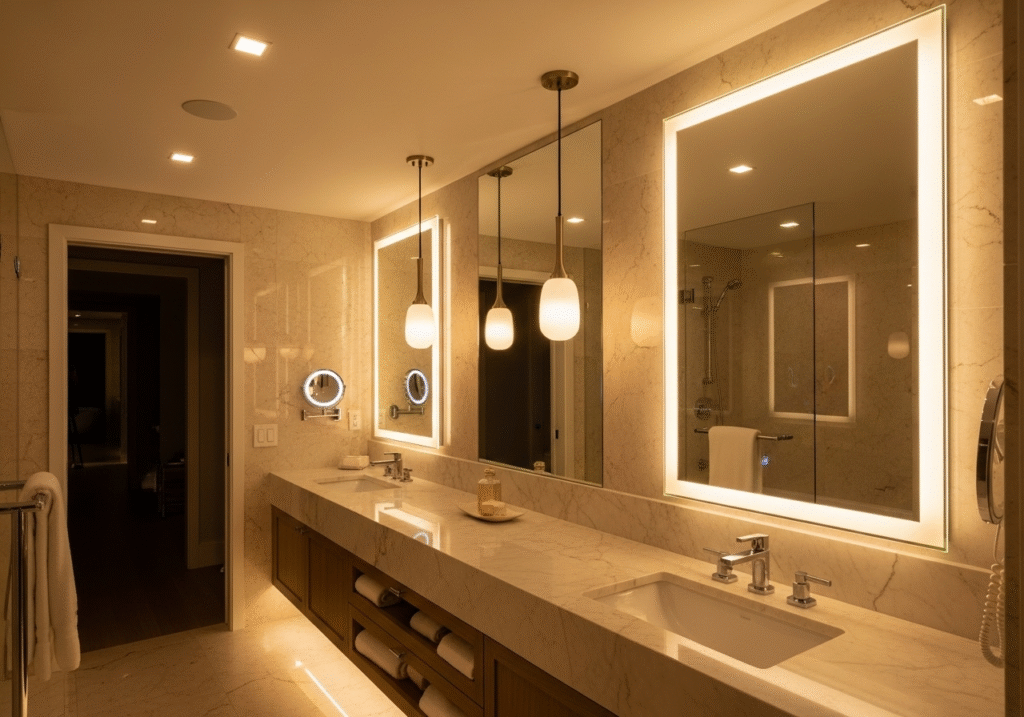 Proper lighting transforms luxury bathroom remodeling in Marin County from good to extraordinary. Layered lighting schemes create ambiance while providing functional illumination for daily tasks.