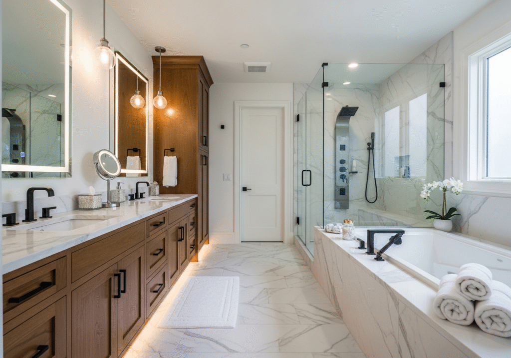 Luxury bathroom remodeling in Marin County represents one of the most rewarding home improvement investments you can make. The five upgrades outlined—premium natural stone, smart technology, spa-inspired showers, custom storage, and professional lighting—create transformative spaces that enhance daily living while boosting property value.